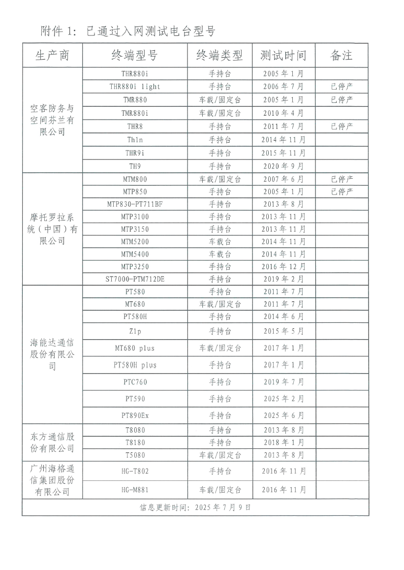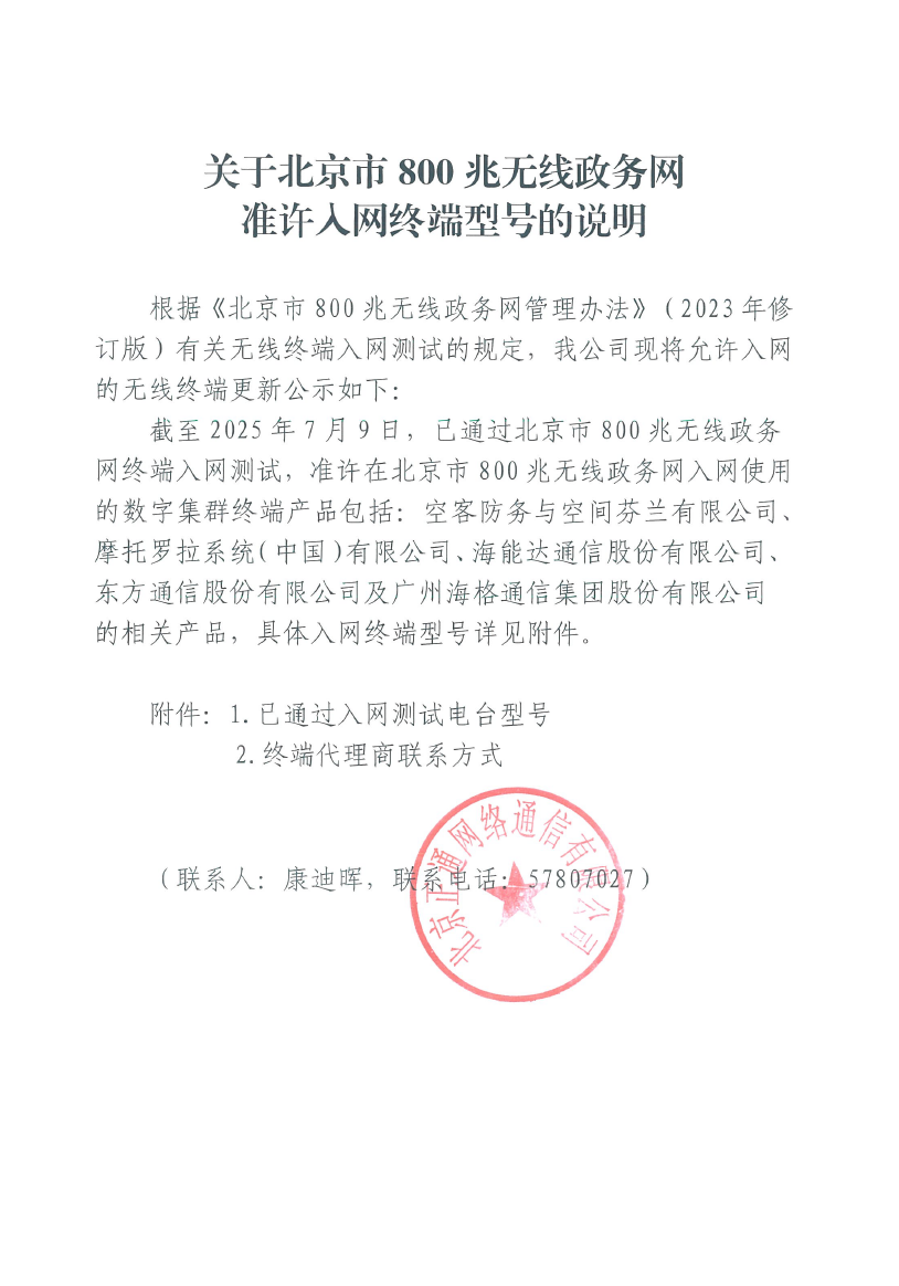 关于北京市800兆无线政务网准许入网终端型号的说明